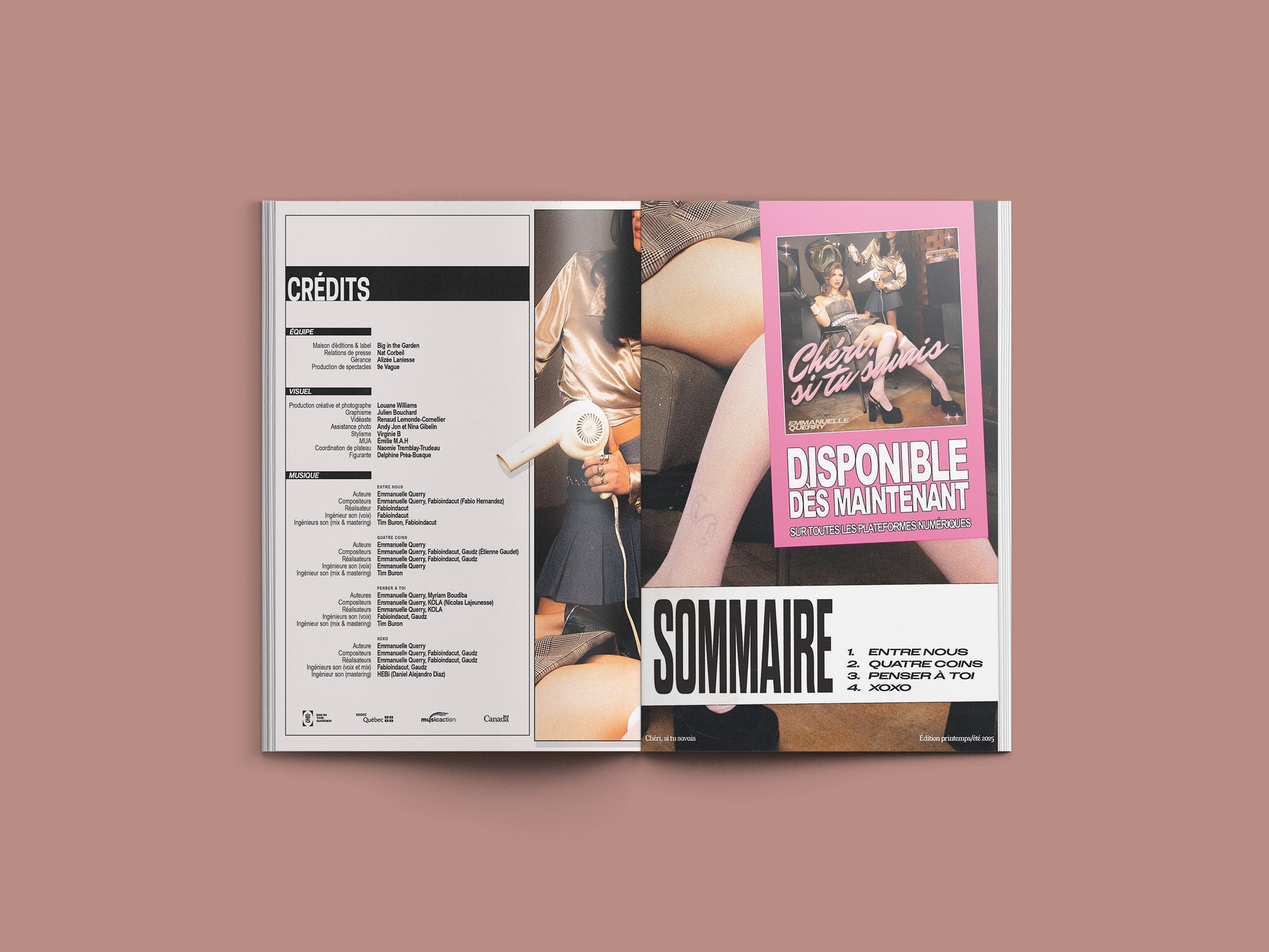 Pour souligner la sortie de son deuxième EP, Emmanuelle Querry présente un mini-magazine exclusif qui plonge au cœur de son univers pop sensible et assumé. Ce livret en édition limitée comprend des photos inédites ainsi que les paroles complètes des chansons. Véritable objet de collection, ce magazine propose une expérience intime et visuelle, à l’image de l’esthétique glamour et introspective qui définit ce nouveau chapitre de sa démarche artistique.